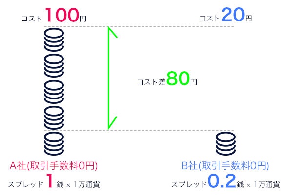 スプレッドの違いによるコストの差